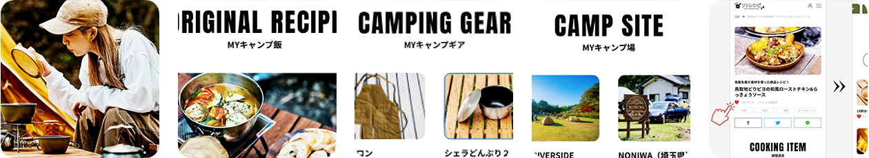 「"キャンプ飯がある暮らし"を楽しみ、趣味の世界を広げよう」をコンセプトにした会員制のWEBサービスを展開しています。限定アイテムやイベント、WEBキャンプサイトなど、キャンプライフをさらに楽しむためのプラットフォームです。