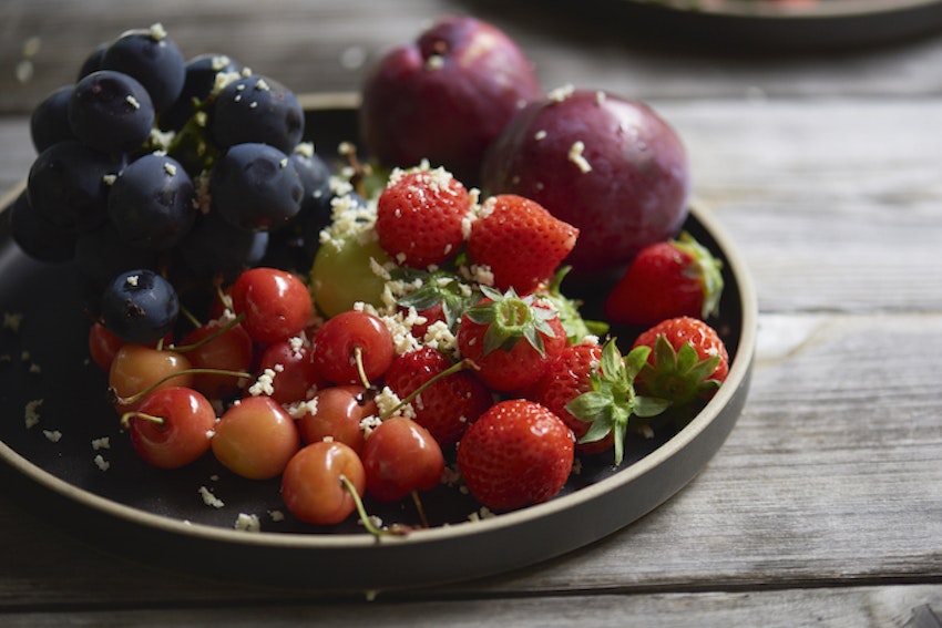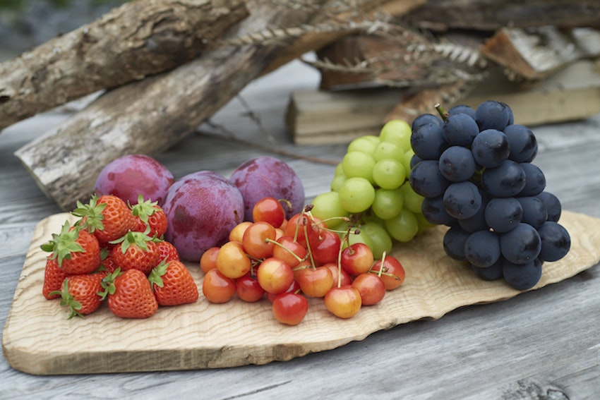 せつこさんのレシピではベリー類がメインでしたが、今回は山梨でとれたさくらんぼ、巨峰、シャインマスカット、プラム、いちごで楽しみます。冬が旬のいちごも、山梨では7〜10月頃に旬を迎えるのだとか。