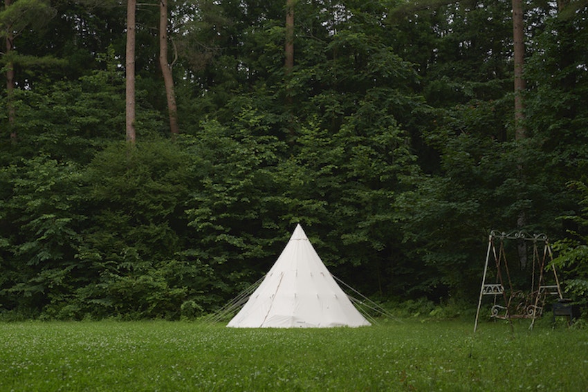 広大な庭にはノルディスクのテントも! もちろん宿泊も可能でキャンプ気分も味わえます。本日はこちらを一棟貸し切りで、“たびごはん”したいと思います!