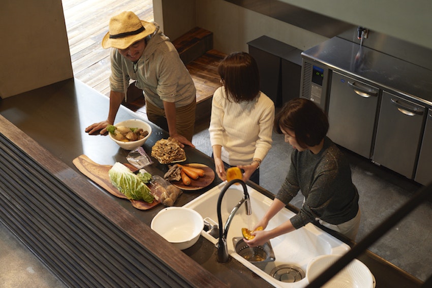 広々としたオープンキッチンで、複数人で作業しても問題なし。大人数の料理を作っても手短に済ませることができます。