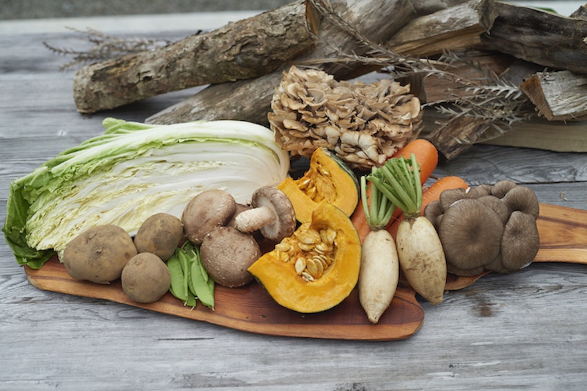 yl&Co.Hotel in Mt.Fujiから5分ほどの「道の駅なるさわ」で買い出してきたのは、山梨の郷土料理「ほうとう」の食材たち。