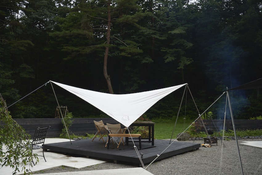 テラスにはタープが張ってあり、焚き火台やBBQグリルも使用できるので、豪華ながらアウトドア体験もバッチリ楽しめます。