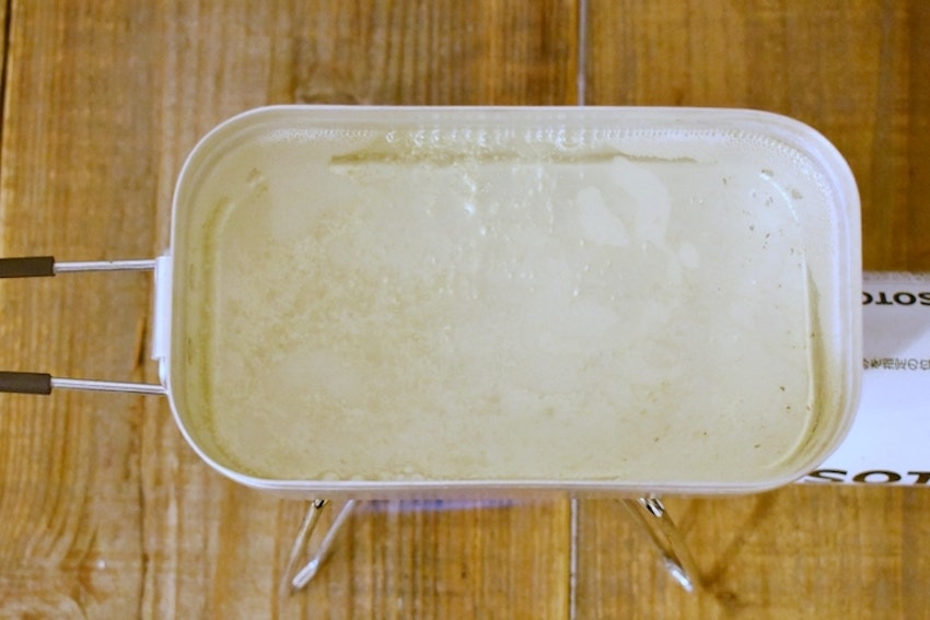 お米の研ぎ汁:鍋にいれたときにメスティンが浸かる量