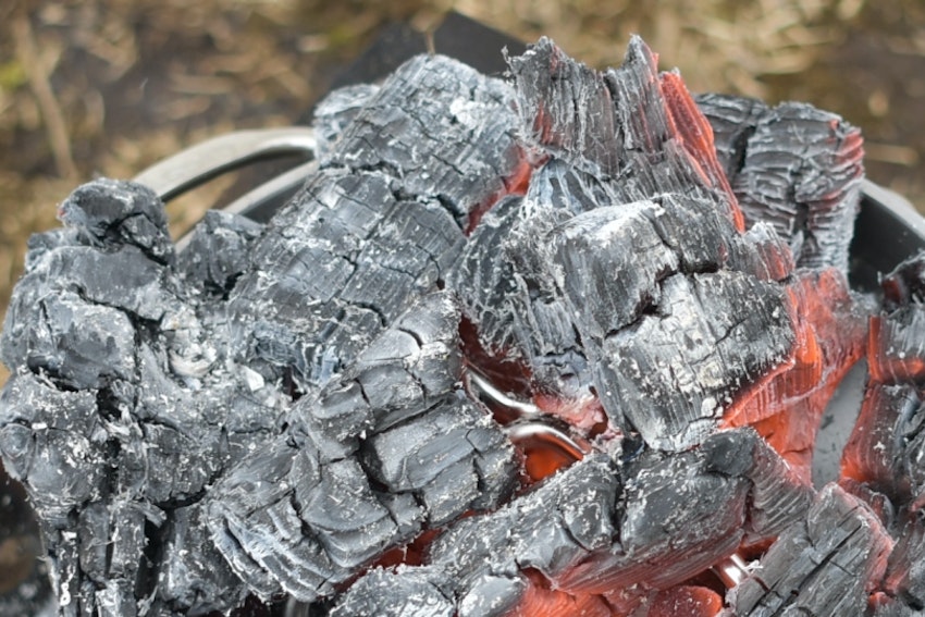 焚き火での調理は熾火(おきび)を推奨します。熾火とは薪や炭が炎をあげずに、芯が赤くなっている状態です。火があがっていなくても高温状態にあり、火力が安定するので火加減もコントロールしやすくなります。燃え上がっている状態より煙も少なくなるので、調理しやすいのも特徴です。