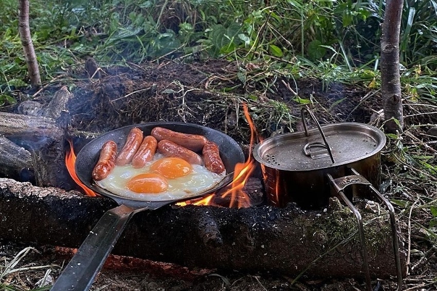 鉄のフライパンを焚き火で使うときは、ワイルドに楽しみましょう!おすすめのレシピを5つ紹介します。