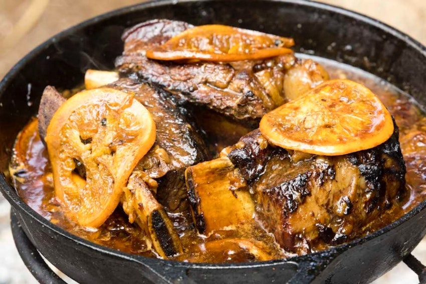 ダッチオーブンを使えば、塊肉の調理も簡単! じっくりと旨味を閉じ込めながら焼き上げるので絶品です。焚き火を楽しむアウトドアシーンは欠かせないアイテムです。