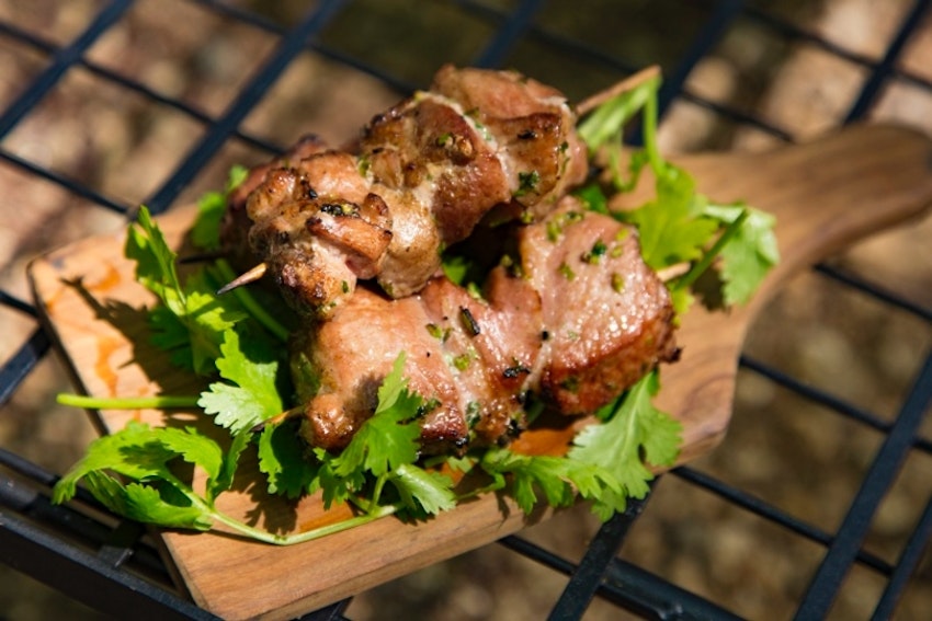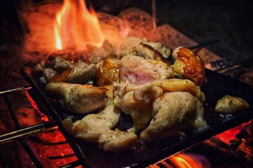 串を刺して透明な肉汁が出てきたら焼き上がり。焼きすぎないように注意しよう。