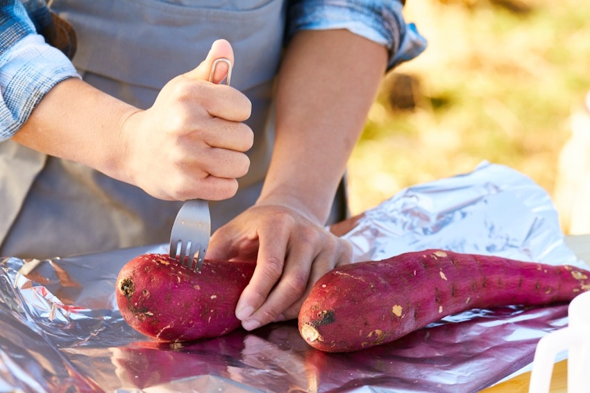 皮付きでじっくり焼くことで蒸し焼きになるので、茹でなくてもおいしく食べられます。