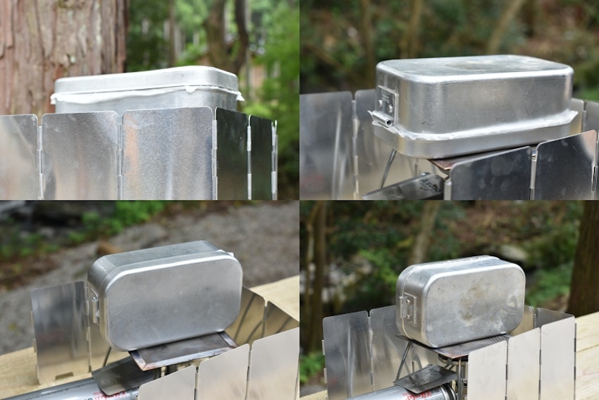 4.メスティンの上下を返し、とろ火〜弱火で5分程度焼く。メスティンの左右面も、それぞれとろ火〜弱火で5分程度焼く。