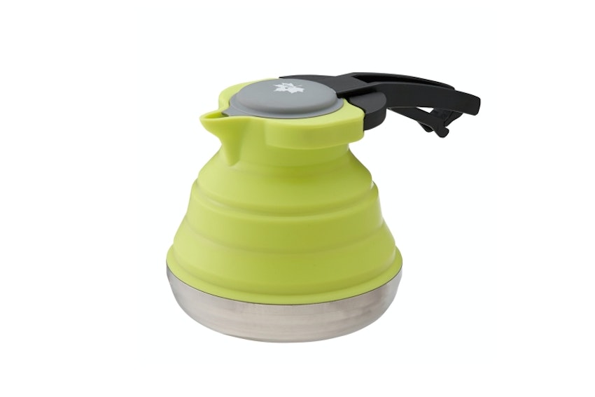 ケトルはどうしてもかさばってしまいがちですが、この「たためるケトル」は上部がシリコンでできており、高さが半分以下にたためます。たっぷり1000ml容量で直火でも使える優れもの。