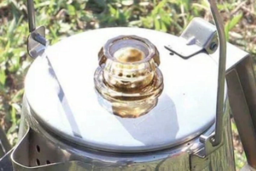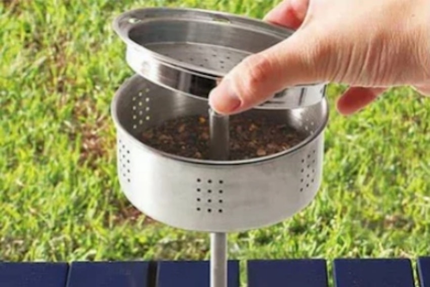 一度に抽出できるのは一杯分。コンパクトで軽量なので、ソロキャンプにおすすめのパーコレーターです。付属の固形燃料で沸かすためのスタンドは、パーコレーターに収納して携行できます。