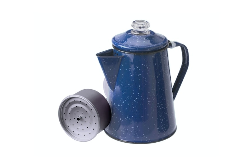 ホウロウ加工スチール製のパーコレーター。きれいな色合いは、自宅はもちろんキャンプでもおしゃれにサイトを彩ります。1200mlの容量があり、8杯分まで抽出可能。ファミリーユースにおすすめ。