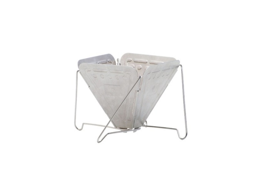 焚き火台をモチーフにした折り畳み式のドリッパー。収納時は約1.4mmほどの薄さに。ワンタッチで組み立てられるので使い勝手も◎。自立するのでコーヒーを淹れ終わった後に、テーブルに置けます。