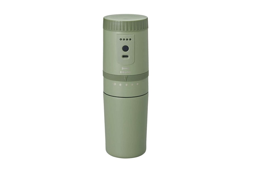 電動で楽に豆を挽くことができます。ドリッパーとカップが一体になっているので、これひとつでコーヒー道具がそろいます。コードレスで使えるUSB充電式(4時間の充電で15回程度使用可能)。見た目もシンプルでキャンプサイトに映えますね。