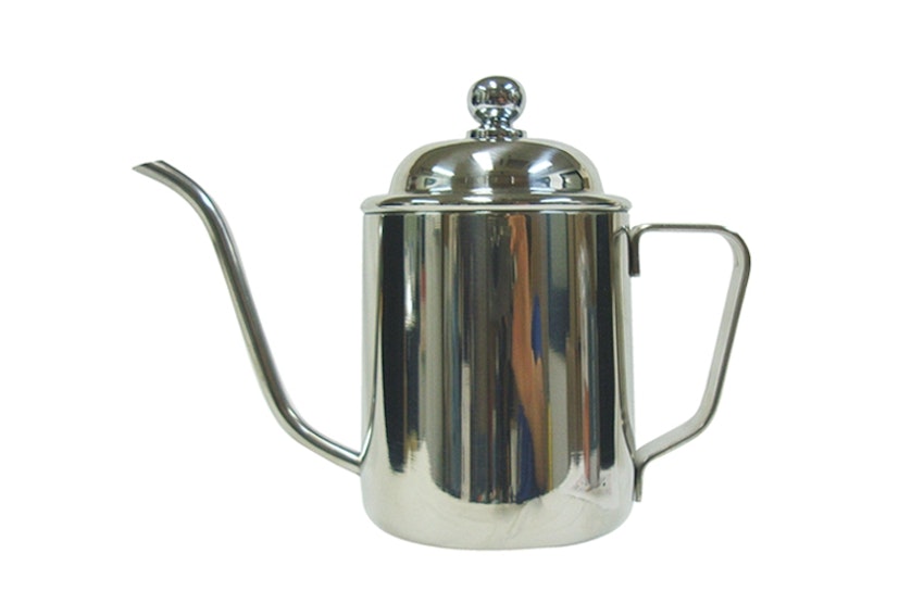 アルミ製で平型なので熱伝導率がよく、お湯を沸かすの早いケトル。注ぎ口が細くなっていて、ドリップコーヒーが淹れやすい仕様です。