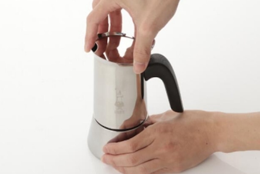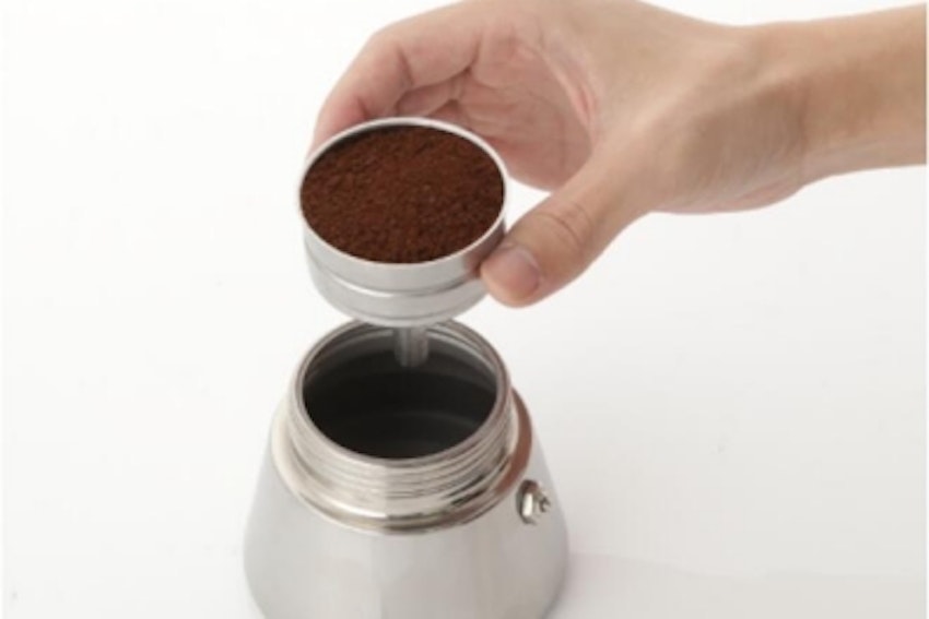 3.バスケットにコーヒー粉を入れ、ふたをかぶせる