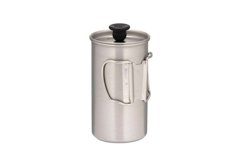 お湯を沸かすだけでなく、調理用の鍋としても利用可能。焚き火で吊り下げられるツルが付いてます。注ぎ口はコーヒーをやや淹れづらいですが、荷物を減らしたいならお鍋と兼用で採用するのもあり。