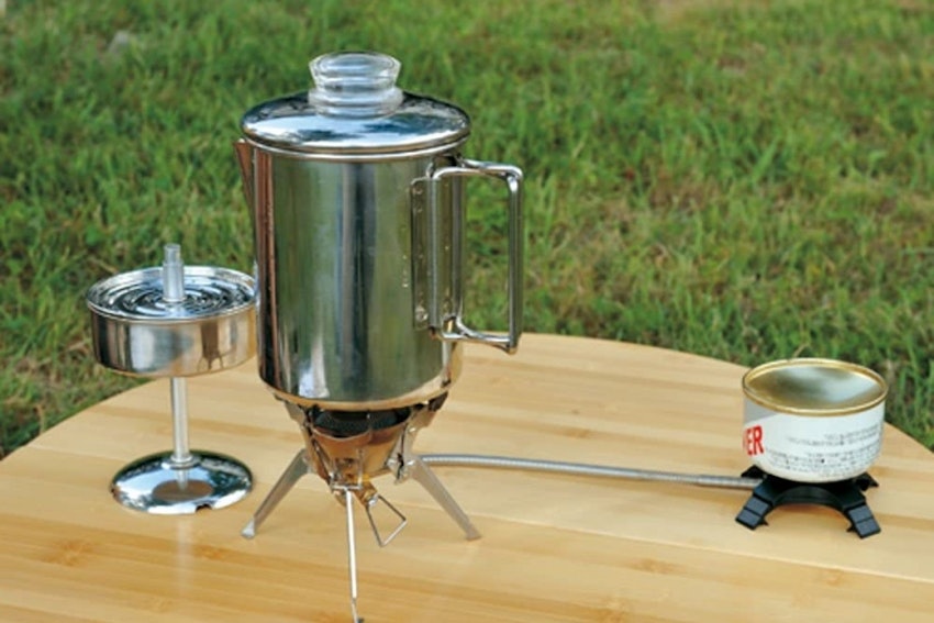 パーコレーターは専用器具にコーヒー粉と水を入れ、直火にかけてコーヒーを抽出するものです。比較的薄めのアメリカンに近いコーヒーができます。直火で煮出す工程はキャンプと相性がよく、多くのアウトドアメーカーがパーコレータを展開しています。