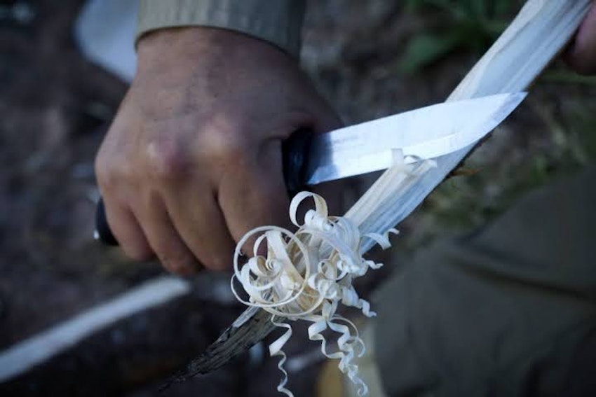 木の枝や幹からカトラリーやお皿、ペグやテントポールなどを作れるように設計されており、1から作り出すワイルドなキャンプを追求するには欠かせない一本です。