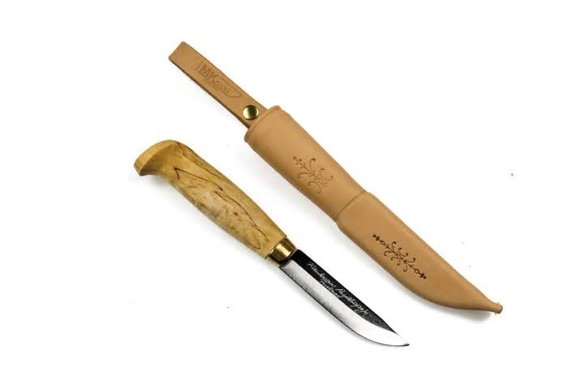 カーリーバーチという木材を使用した、独特の趣きがある木材を採用。刃渡りはやや短めですがバトニングも問題なく可能で、切れ味に優れたSPTカーボンをブレードに使用したことでフェザースティックも作りやすい一本です。