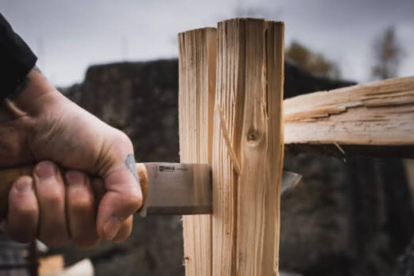 焚き火用のナイフは薪割り(バトニング)やフェザースティックなど、薪を細かくしたり燃えやすいように加工したりする工程に向いているナイフです。