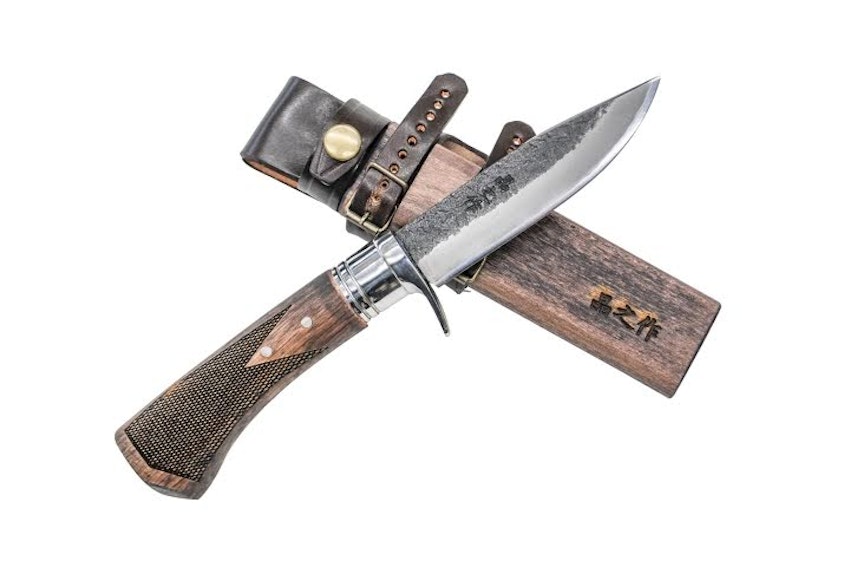 炭素焼き戻して黒く染まったハイカーボンが鋭い切れ味を実現し、43mmの刃厚も相まってバトニングがしやすいのが魅力。ブレードグリップには高級家具にも使用され、耐久性も高いウォルナットを使用しているのもポイント。