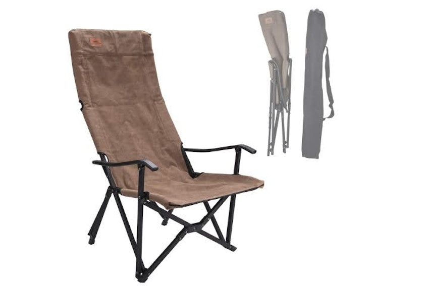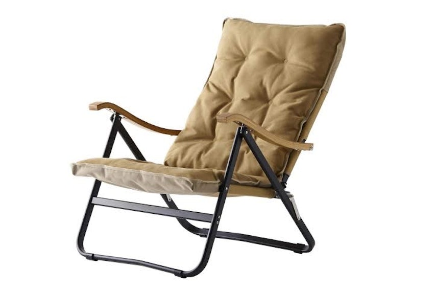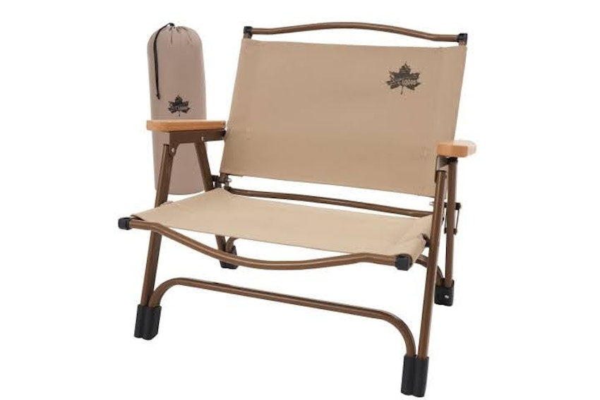 焚き火をしているときも穴が空く心配なくゆったりとくつろげる、防炎素材を使用。持ち運ぶ際に便利なハンドルを採用した使い勝手の良さと、キャンプの雰囲気に馴染むウッドアームレストが魅力のモデルです。