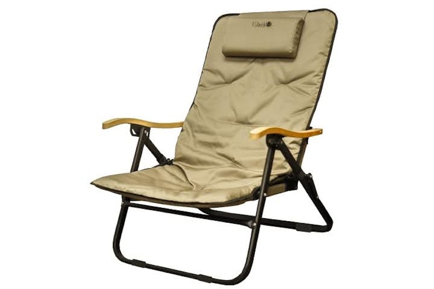 組み立て式の特徴である深座りのしやすさを最大限に活かした、キャプテンスタッグのトレッカー グランドリクライニングチェア。