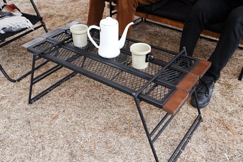 食事用のローテーブルとしてだけでなく、焚火の上で使用したり、焚火を囲んで囲炉裏テーブルとして使用したり、ラックとして使用したりなど自由に変形が可能な商品です。脚の部分にプレートを通すだけの簡単設計なので組立に手こずる心配もありません。