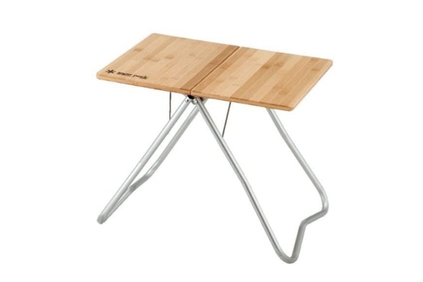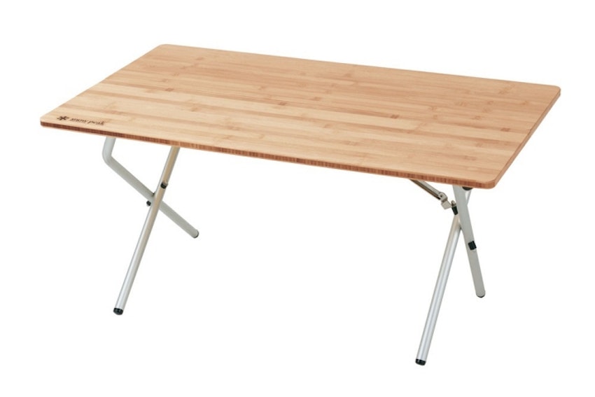天板が竹の集成材でできたスノーピークのテーブル。見た目的にも美しく、アウトドア以外の利用にも◎。W字形状の2本の脚が4本の設置ポイントをつくり出すので安定感も抜群です。持ち運びに便利なケースにはハンドル付きで、持ち運びも簡単です。