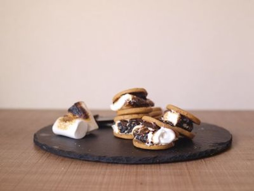 2. グラハムクラッカーorビスケットにチョコと炙ったマシュマロを挟み完成。