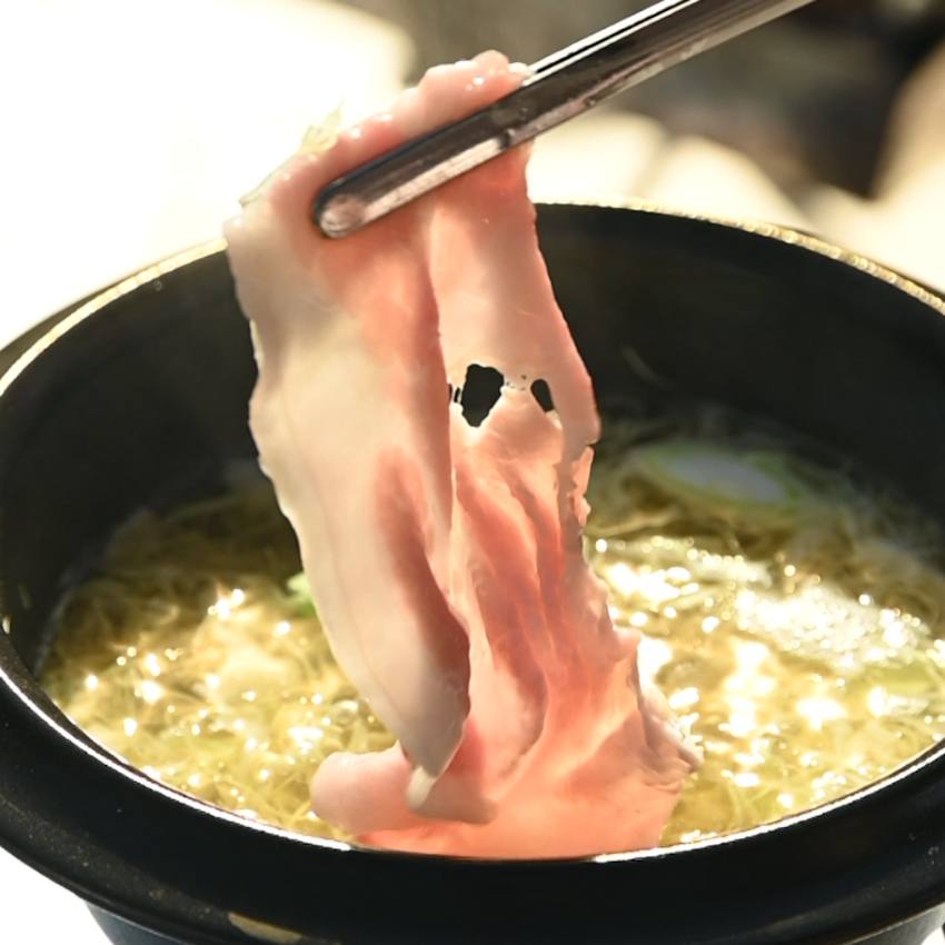 ④ 野菜がしんなりしてきたら、豚肉をしゃぶしゃぶしていただく。