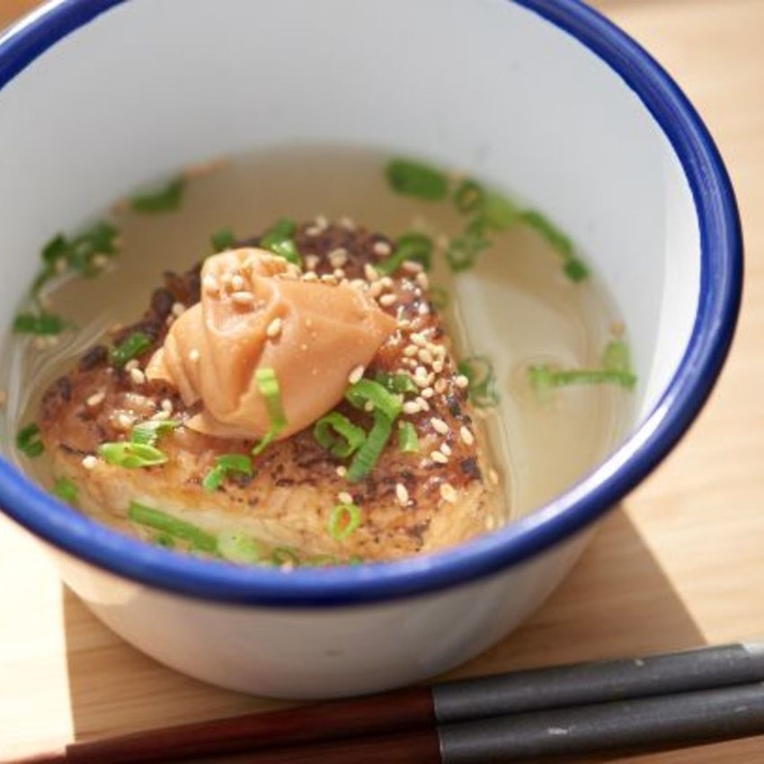 ② おにぎりを器に入れ、お好みの数の梅干しを置き出汁を注ぐ。