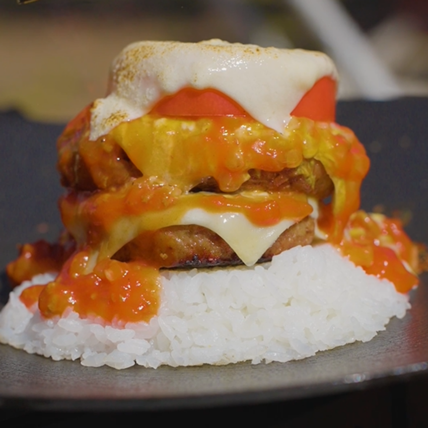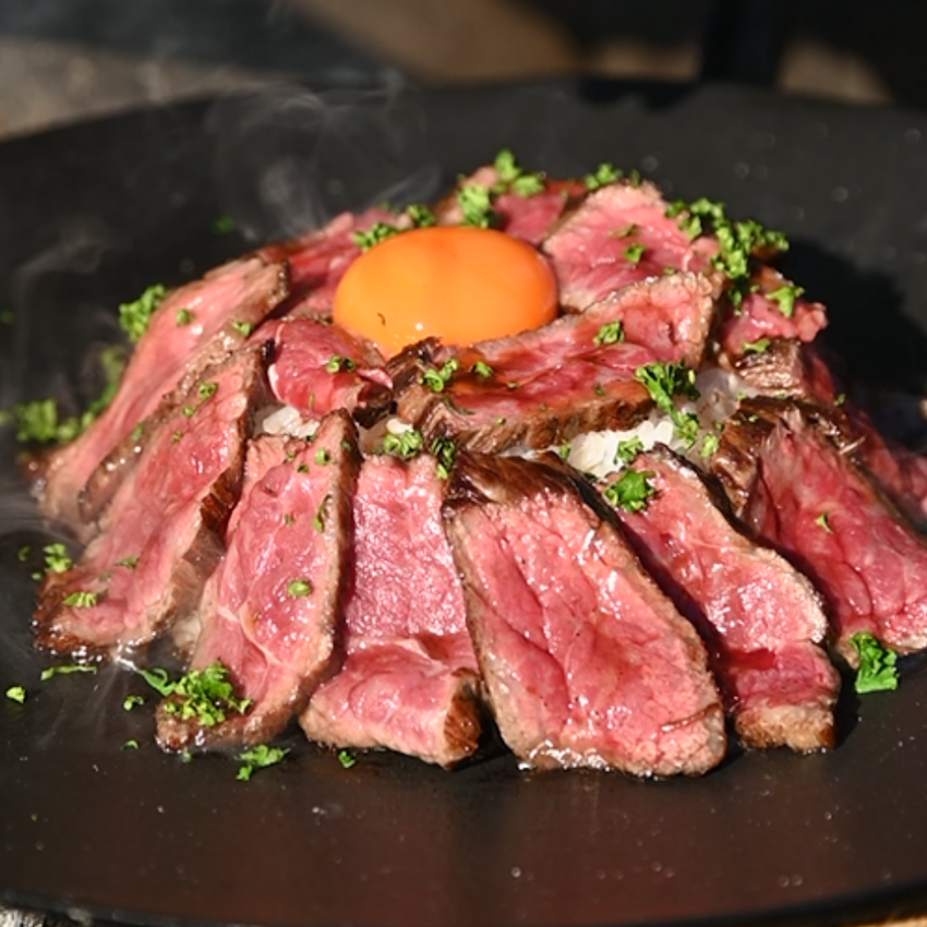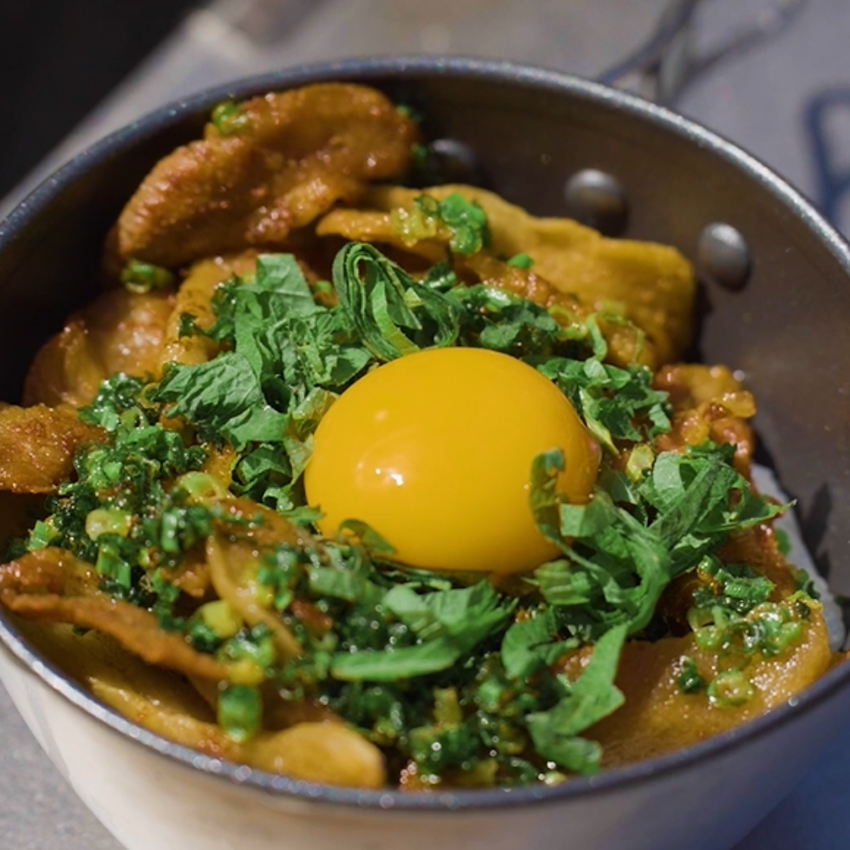 ③ ②に卵を割り入れ半熟になったら、ご飯にかけて完成。