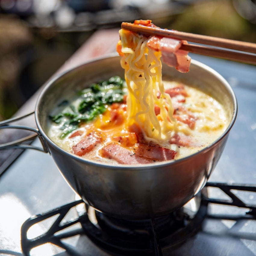 人気の背徳やみつきラーメンをキャンプで再現。ソトならにんにくマシマシも怖くない!
