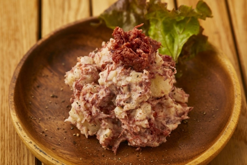 3.5分ほどコンビーフをおき、ポテトサラダ、黒こしょうと一緒に和えれば完成。