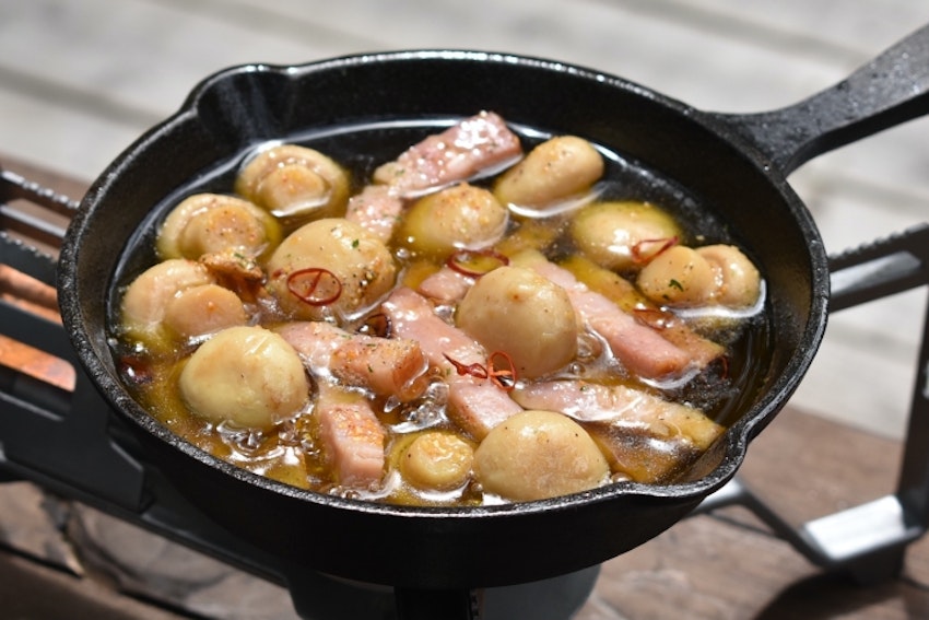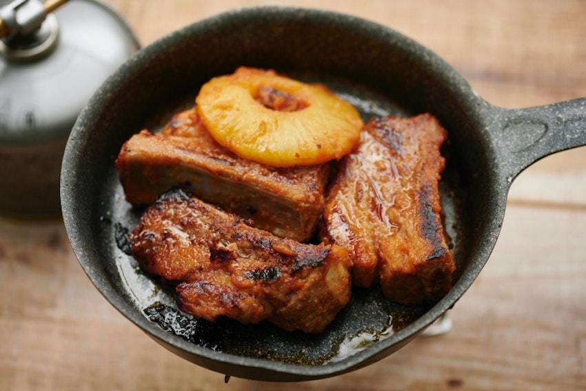 前日に準備しておけばキャンプ当日はフライパンひとつで調理可能です。前日から漬け込むことで中までしっかりと味がしみこみます。スペアリブを焼く際は弱火~中火で!火が強いと中に火が通る前に焦げ付いてしまうので注意しましょう。