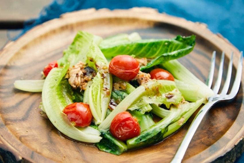 1.ロメインレタスは食べやすい大きさに切る。ミニトマトはヘタをとり半分にカットして、ツナ缶は油をきる。