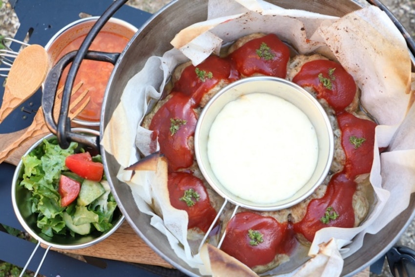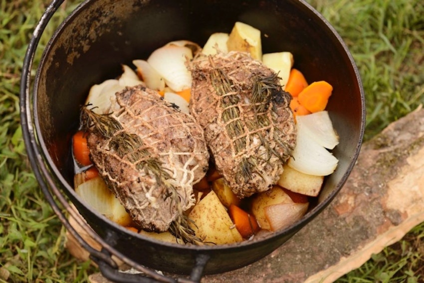 ダッチオーブンを使えば、塊肉の調理も簡単!じっくりと旨味を閉じ込めながら焼き上げるので絶品です。焚き火を楽しむアウトドアシーンは欠かせないアイテムです。