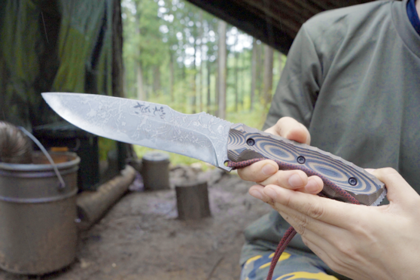 「刃元で薪割り、刃先で調理と、これ一本あればキャンプで困らないオールインワンナイフ。私の相棒です」。