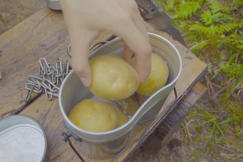 石を飯盒の底に敷き、水を入れその上にじゃがいもを投入して火にかけることで、蒸し器として飯盒を活用するアイデアレシピ。石を使うあたりは、彼女ならではですよね。もちろん、味も抜群!簡単にぱぱっとできるので、飯盒をお持ちの方は、ぜひお試しください。