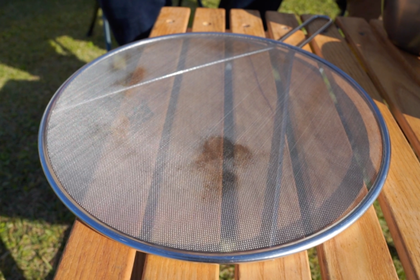 車中泊に特化した、おすすめ調理器具と紹介してくれたのは、「油はね防止ネット」。「キャンプ飯なら気にならないかもしれませんが、車内で料理するとき、周りを油で汚したくないときに、すごくおすすめです。まだ試したことがない人はぜひ使ってみてください!」