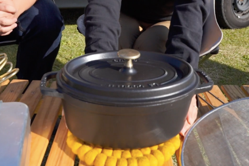 まみさん「バンライフでは水を捨てづらいので、極力水を使いたくないんです。その点Staubは無水調理ができるのがいいところ。肉じゃが、鍋、カレー、シチューと、大抵の料理は全部これでできちゃいます」