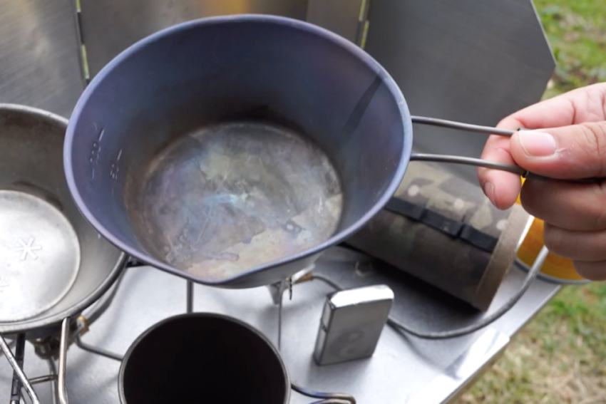 何でも使えるシェラカップ!「HIGHMOUNTはシェラカップに珍しく注ぎ口がついているため、コーヒーを入れるのにいいと一目惚れで購入。他のクッカーとスタッキングもできます」