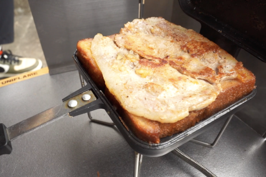 3.2の上に食パンを重ねて蓋をして裏返し、パンを焼く。