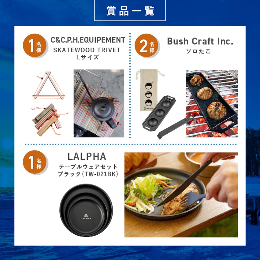 1.大人気アウトドアブランドの賞品を抽選でプレゼント!