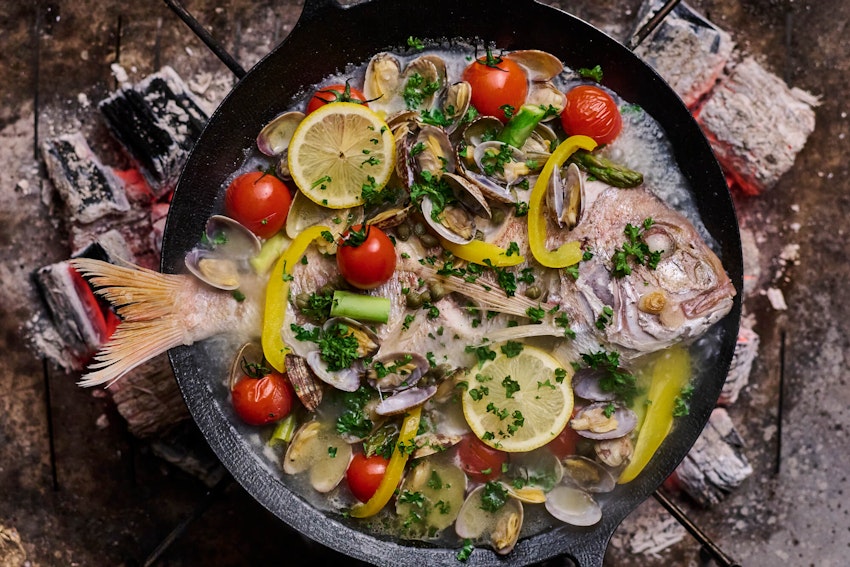 食卓が華やぐ見た目が鮮やかなマルチグリドル定番レシピ。魚介の旨味がつまったスープも余すところなく楽しもう!