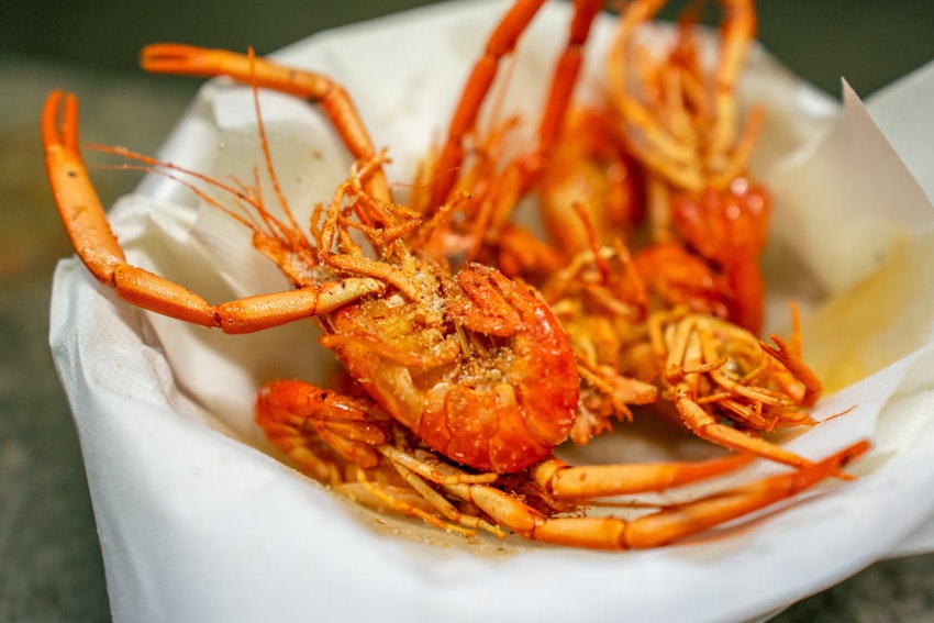 「伊豆の極めし」プロジェクト初年度である2024年度は、西伊豆町に古くから伝わる伝統食材「潮かつお」と、南伊豆町で育てた大粒の高級「鮑」を贅沢に使った「潮かつおと鮑の“極だし”カレー」。そして、松崎町の地元民に愛される「ズガニ(モクズガニ)」を丸々一杯、殻ごと詰め込んだ「松崎ズガニの“極うま”粥」の2品を開発し、クラウドファンディングに挑戦。