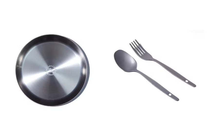 ┗シェラどんぶり2レギュラー&ジュニア+ステンレスプレートM+チタンスプーン・フォーク+タオル巾着+まな板ヘッド