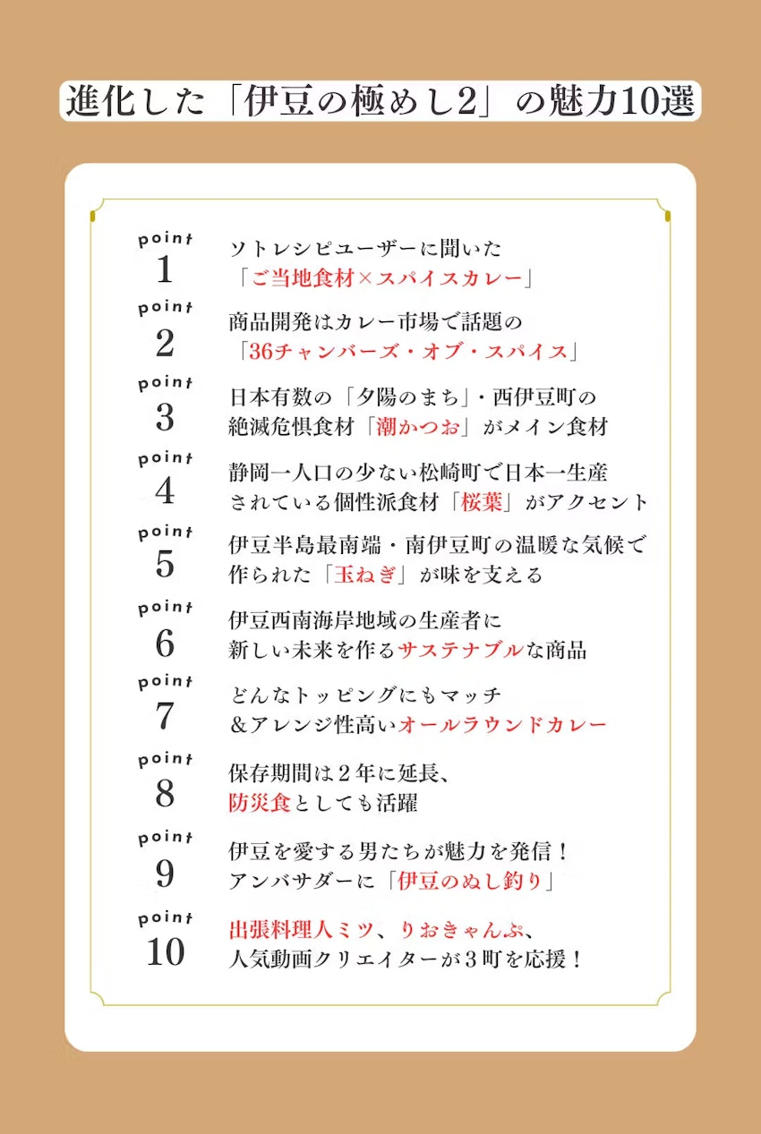 昨年度の「伊豆の極めし」「伊豆の極CAMP」の成功をもとに、2025年はさらにたくさんの方にこの町を知って、来てほしい、そんな思いから開発されたのが今回の「伊豆の極めし2」です。